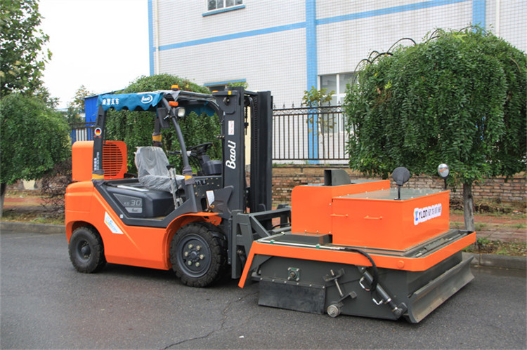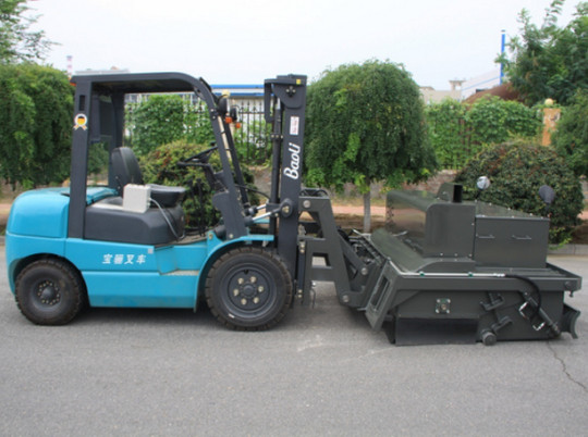 我公司生產(chǎn)的路面環(huán)保無塵清掃機是結(jié)合國內(nèi)外同類設(shè)備特點開發(fā)的新一代路面環(huán)保無塵清掃機。在工作過程中沒有灰塵,解決了道路施工中灰塵大,影響交通、環(huán)境污染的問題,響應(yīng)了國家提倡環(huán)保節(jié)能的政策。該設(shè)備在小型裝載機、滑移裝載機、叉車等基礎(chǔ)上進行改裝,經(jīng)濟實用。采用專業(yè)、高功效的環(huán)保無塵清掃設(shè)備,替代傳統(tǒng)大量人力低效、不安全、灰塵大的清掃方法,節(jié)省人力成本,具有效率高、效果好、速度快、油耗低等特點。該機采用封閉灰斗箱,大顆粒通過刷子直接掃入灰斗箱中,配置高效吸塵器,通過風(fēng)機吸力將微灰塵吸到濾箱體內(nèi),通過濾箱體內(nèi)濾芯的過濾和反吹部件的反吹最后落入灰斗箱中,灰斗箱滿后,可以傾倒至垃圾處理點或直接裝車,清潔而環(huán)保。清掃器與原機鏟斗可快速更換,還可選配多種機具,便于實現(xiàn)一機多用(裝載、無塵清掃、除雪、掃雪、拉毛等),實現(xiàn)多功能。